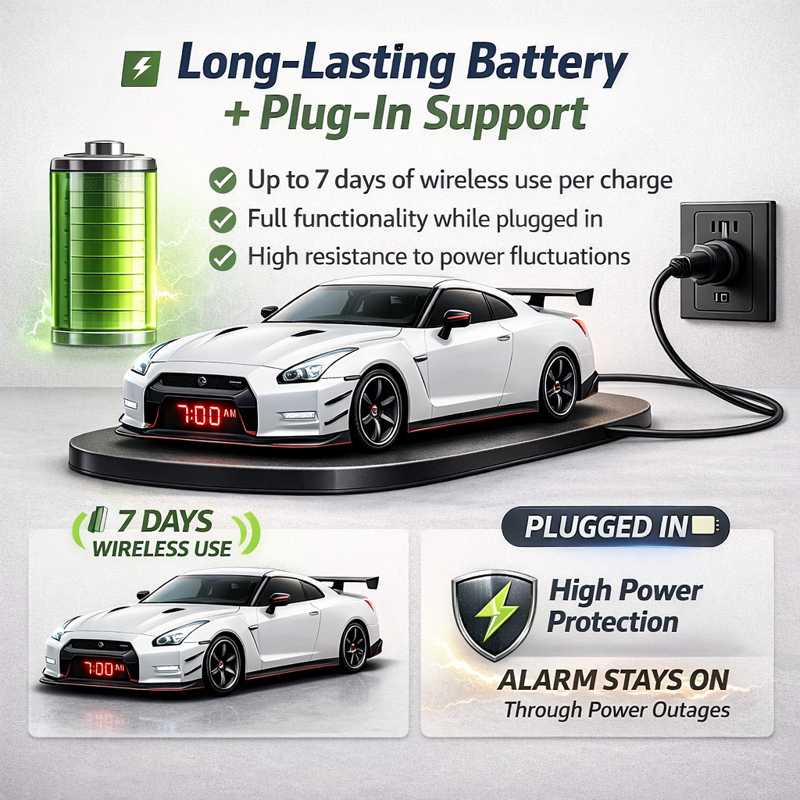 Bring automotive passion right onto your nightstand or desktop. This Hypercar Alarm Clock is crafted as a precision widebody sports car replica packed with immersive effects, practical functionality, and premium design — making it both a high-impact decor piece and a reliable everyday timekeeper.